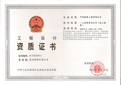 中國能源工程有限公司建筑行業(建筑工程)甲級工程設計資質順利延續